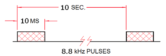 The resultant mechanical motion is transmitted to the metal case of the beacon, which in turn radiates acoustic energy into the surrounding water at 8.8 kHz.